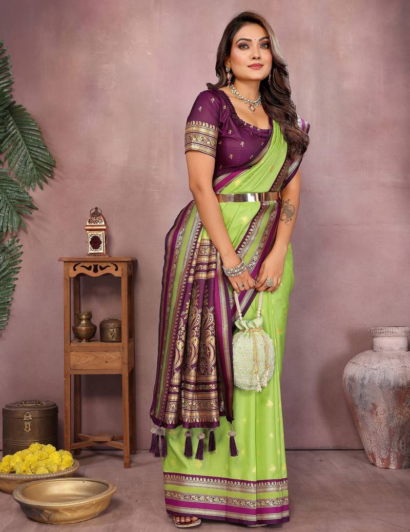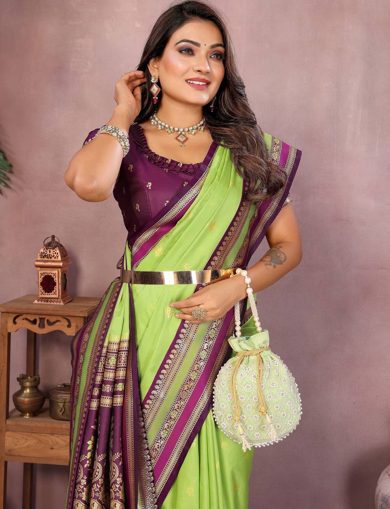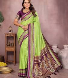 Green color handloom silk fabric jacquard weaving designer partywear saree