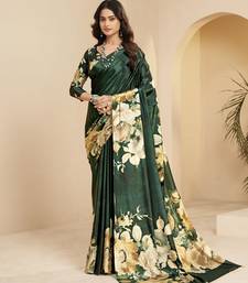 Green color malai crepe art silk designer digital printed ethnic partywear saree