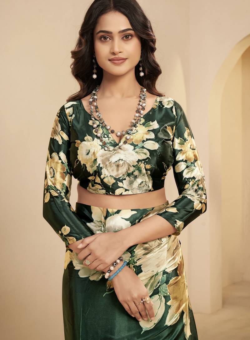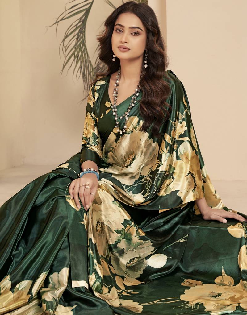 | Product Name | Green Color Malai Crepe Art Silk Designer Digital Printed Ethnic Partywear Saree | |