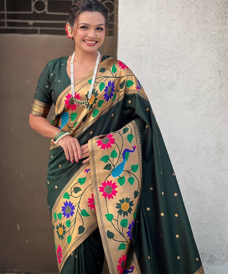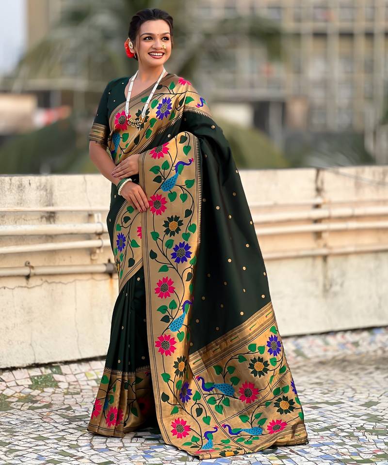 | Product Name | Green Color Paithani Silk Blend Fabric Woven Designer Partywear Saree | |