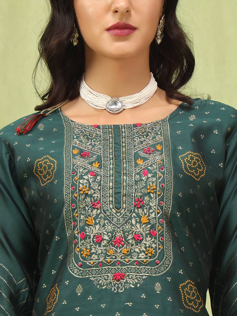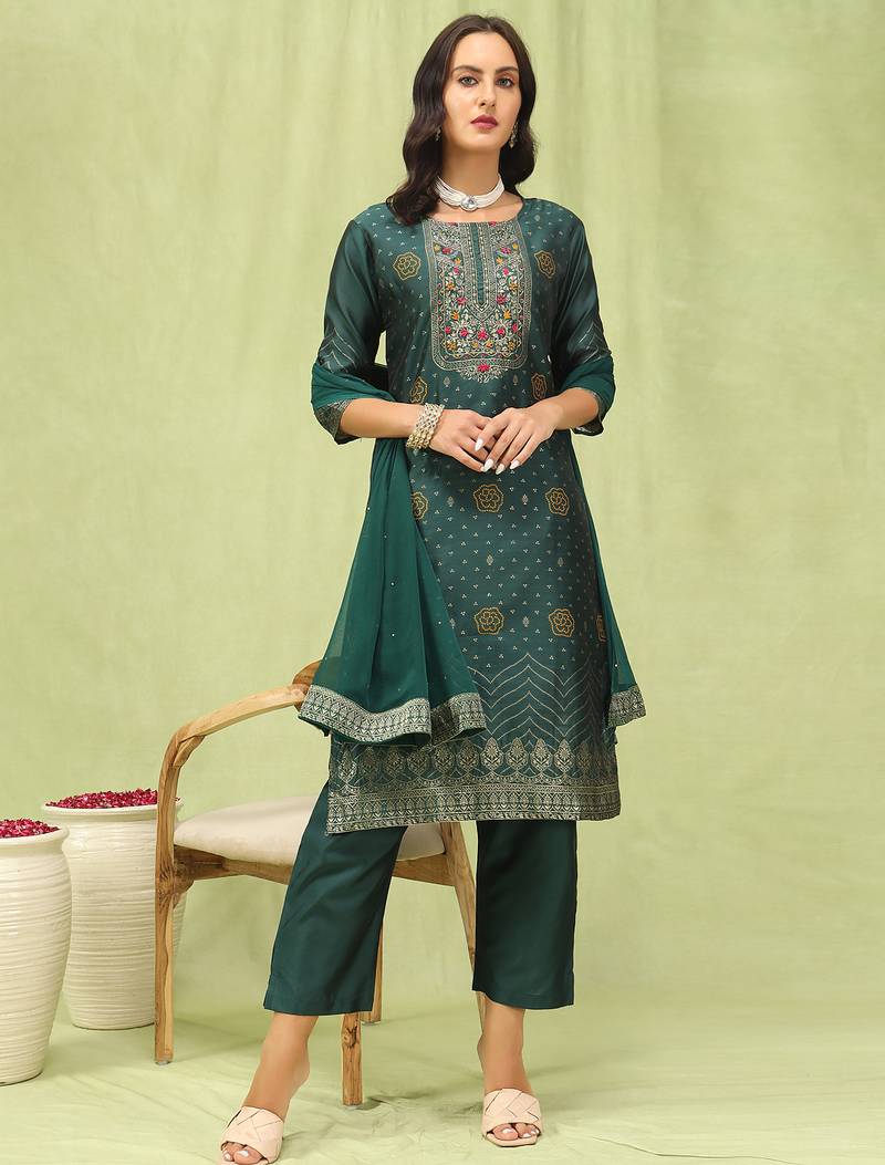 | Product Name | Green Color Silk Blend Fabric Designer Embroidered Suit | |