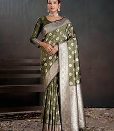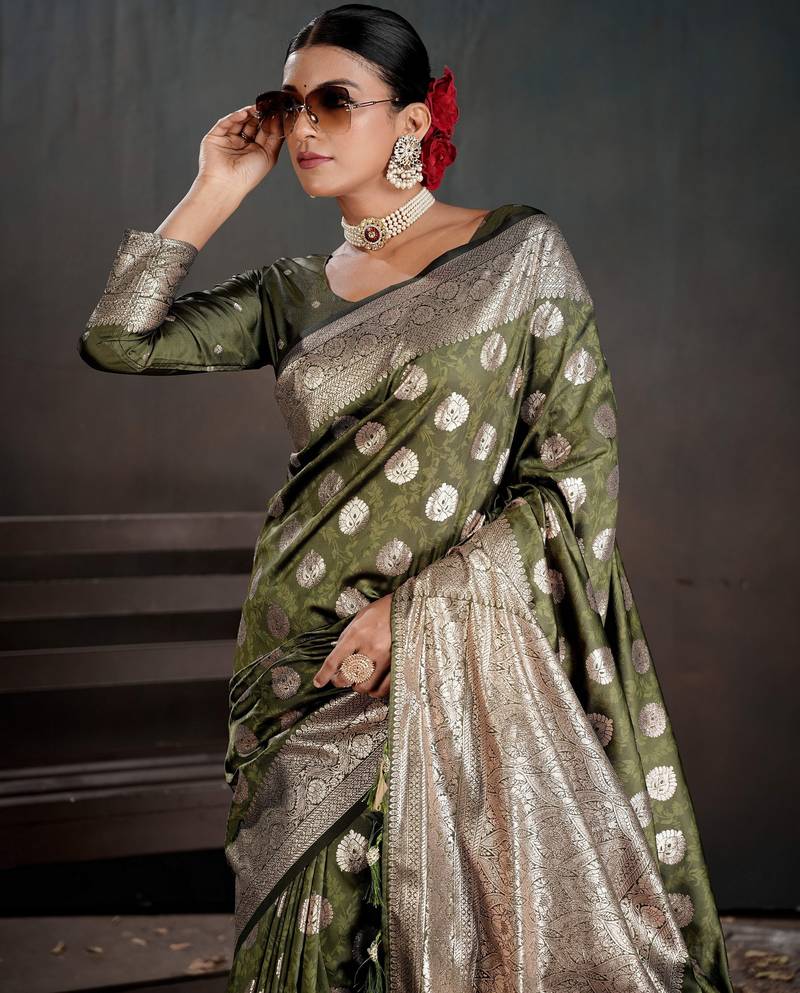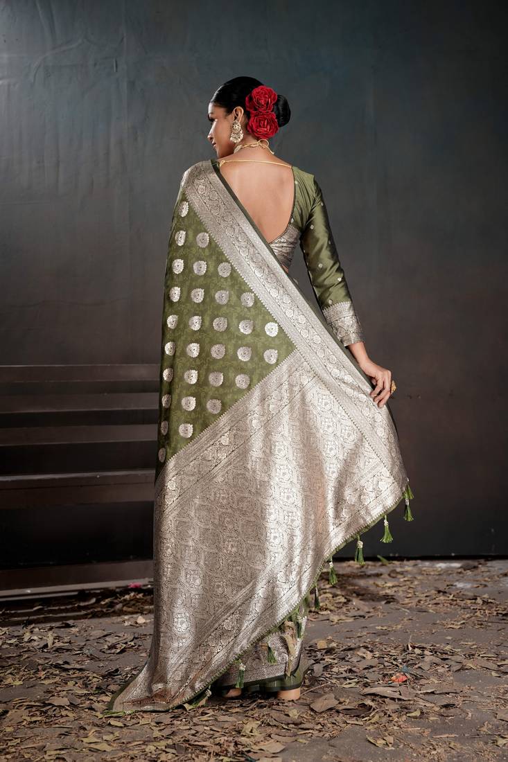 Green color silk blend blended fabric woven jacquard designer partywear saree