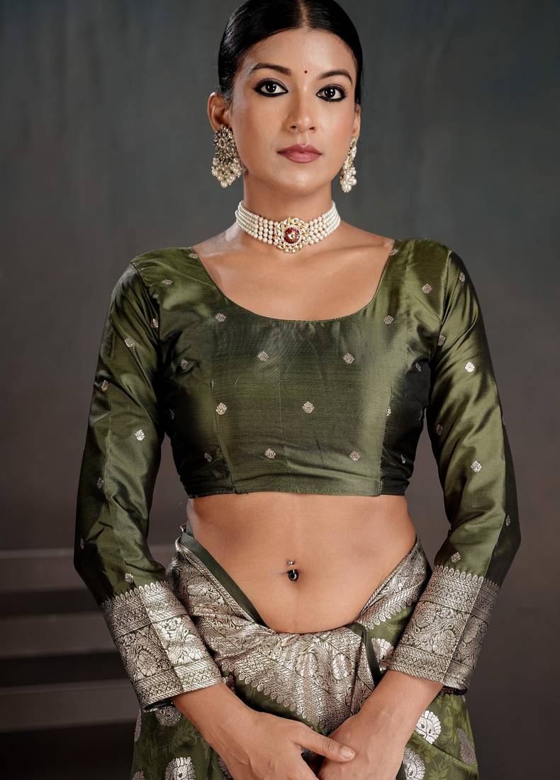 | Product Name | Green Color Silk Blend Blended Fabric Woven Jacquard Designer Partywear Saree | |
