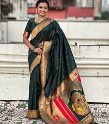 Green color soft silk blend fabric woven paithani designer cultural rich saree