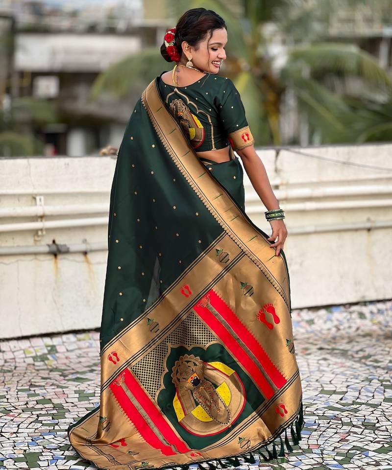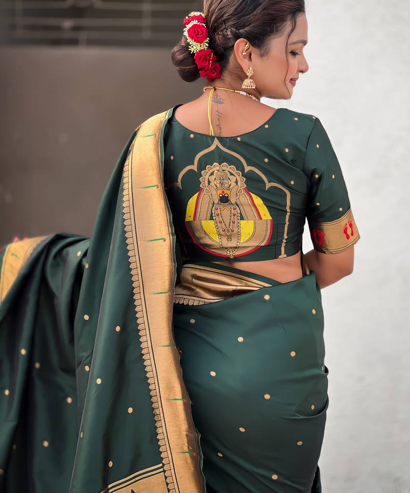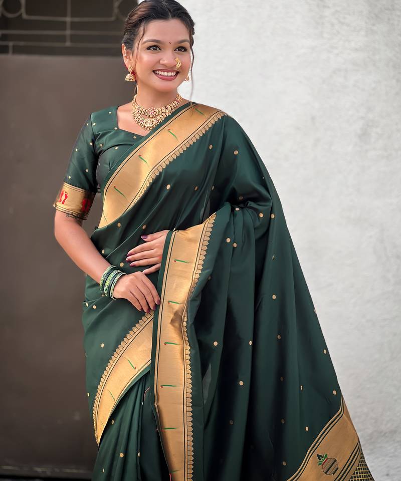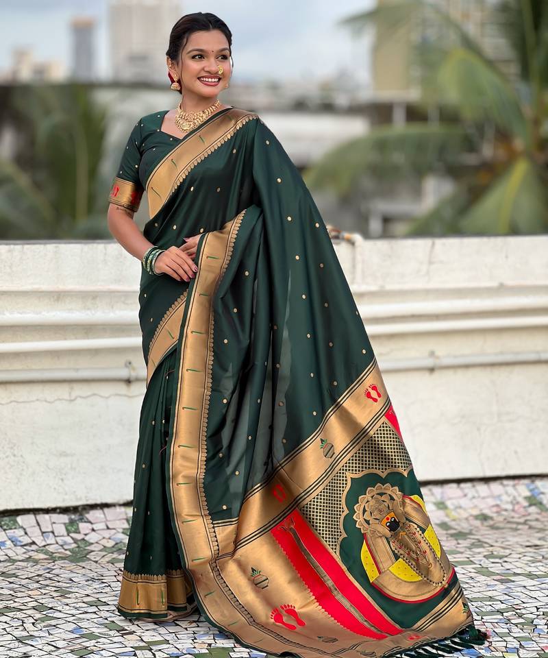 | Product Name | Green Color Soft Silk Blend Fabric Woven Paithani Designer Cultural Rich Saree | |