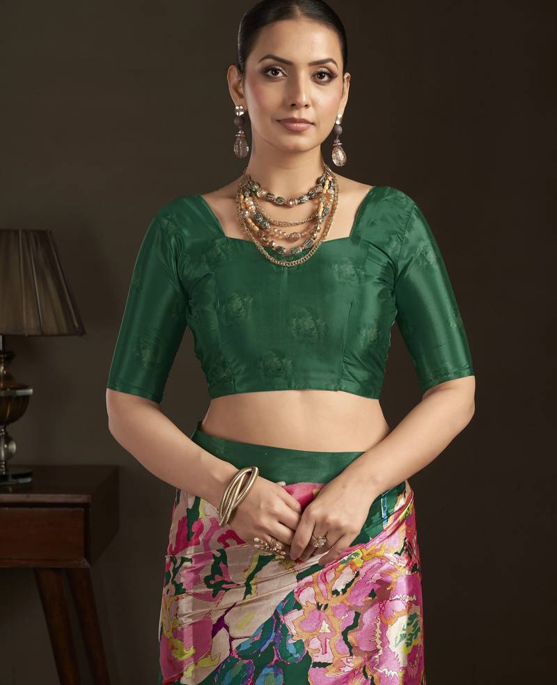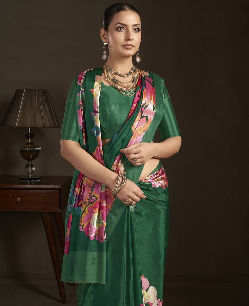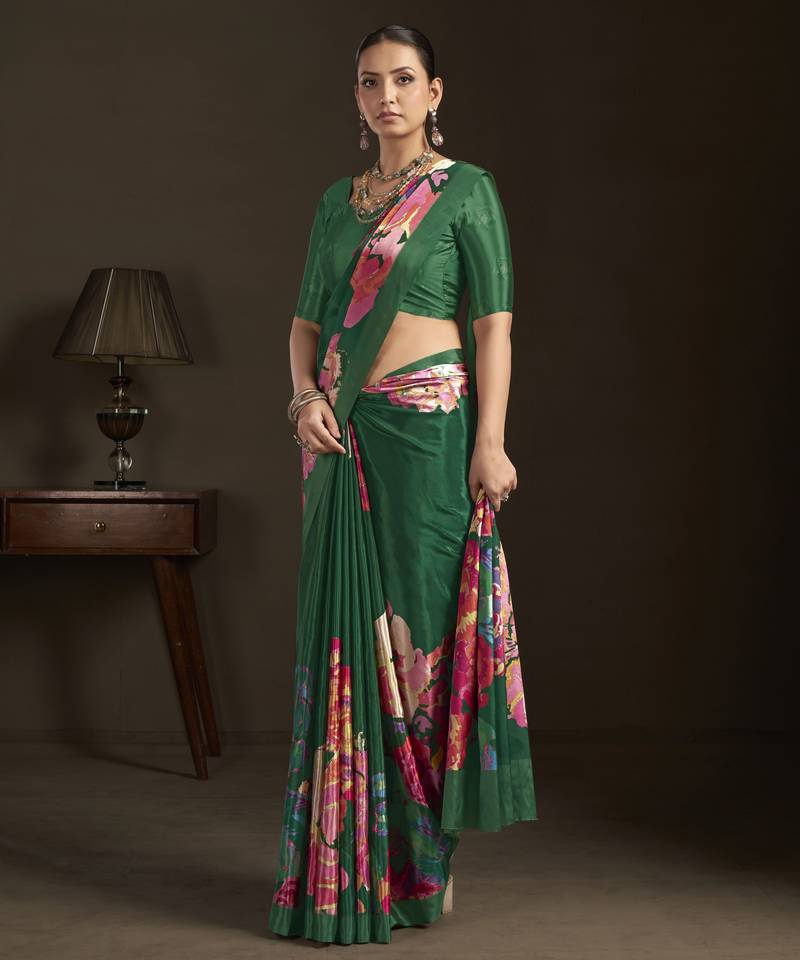 | Product Name | Green Color Stylish Digital Printed Silk Blend Crepe Fabric Saree For Trendy Looks | |