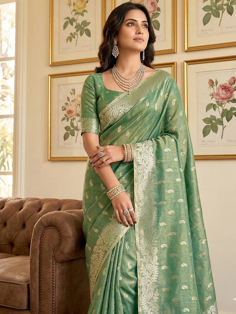 | Product Name | Green Color Tissue Silk Fabric Designer Ceremonial Saree | |