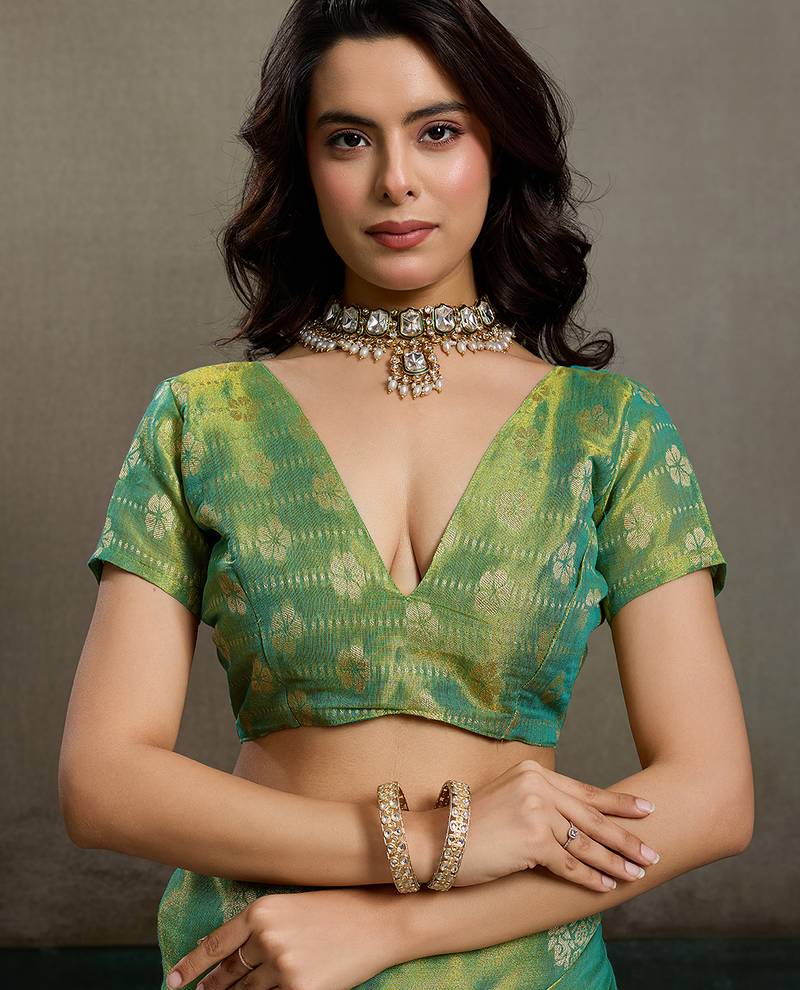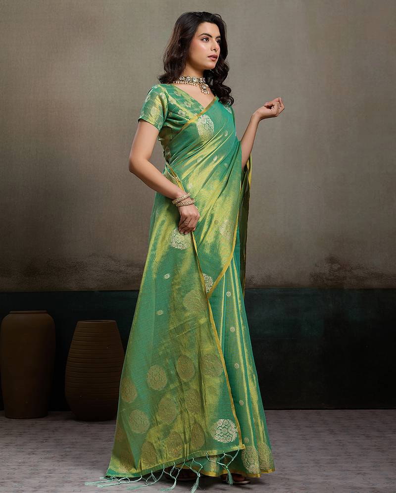 | Product Name | Green Color Tissue Silk Fabric Woven Designer Partywear Saree | |