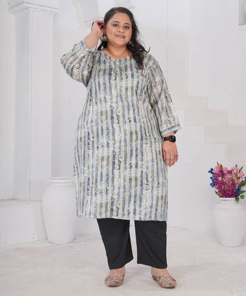 | Product Name | Grey Color Designer Printed Smart Look Plus Size Kurti | |