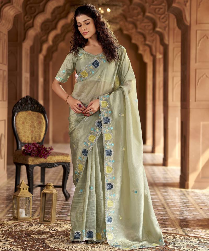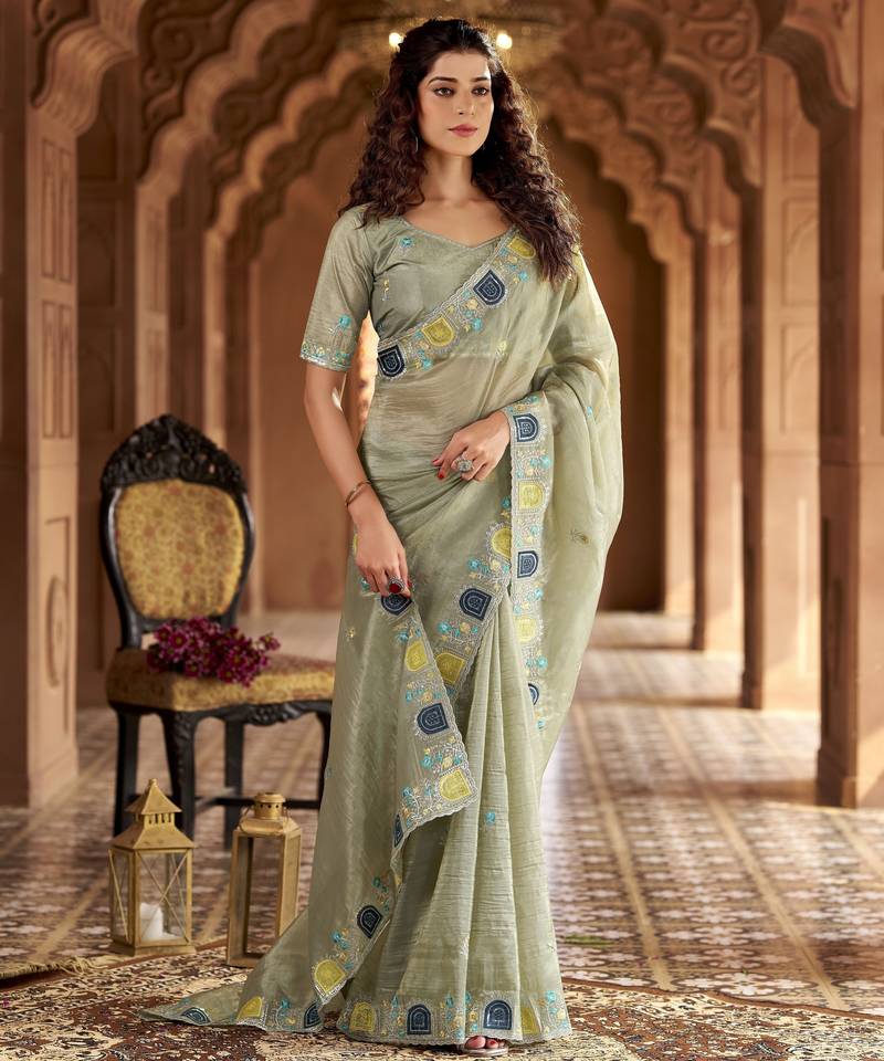 | Product Name | Grey Color Gold Crunchy Silk Multy Thread Embroidery Work Rich Fancy Saree | |