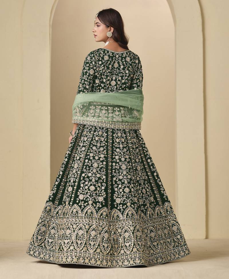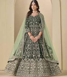 Green heavy embroidered wedding ceremonial anarkali suit semi stitched