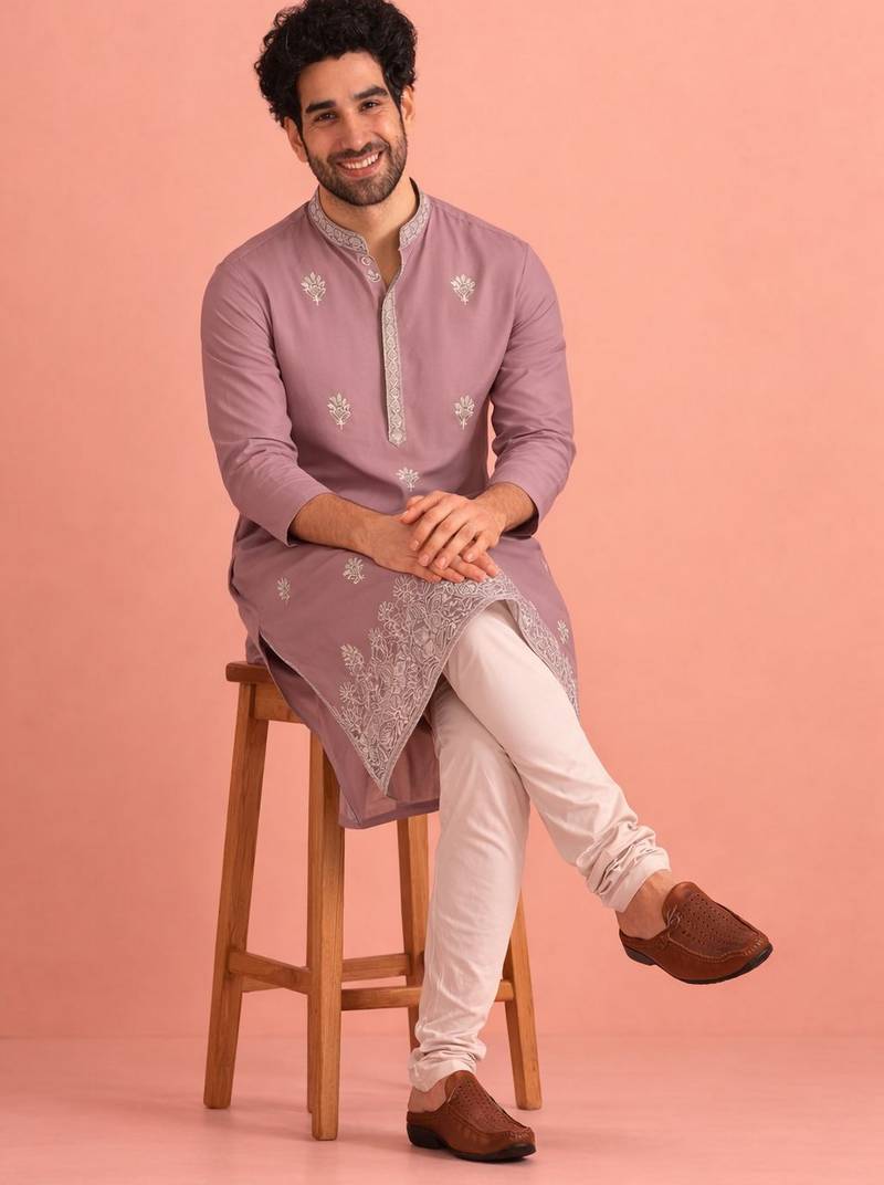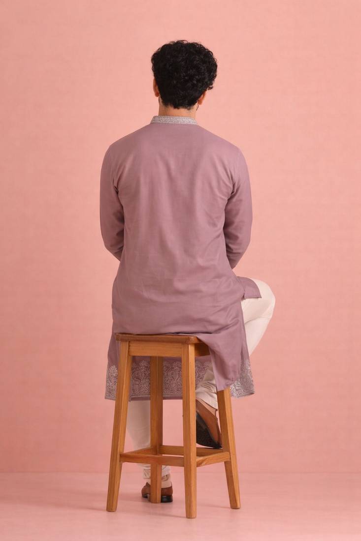 Lavendar color designer embroidered men's ceremonial kurta payjama