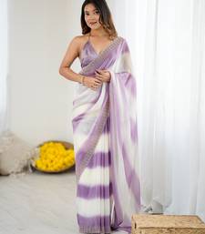Lavender color beautiful fendy satin fabric saree with glamorous zarkan diamond work
