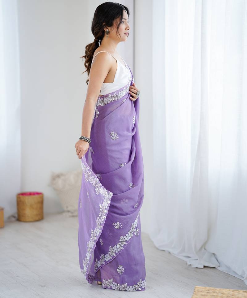 | Product Name | Lavender Color Chiffon Crush Fabric Heavy Designer Work Partywear Saree | |