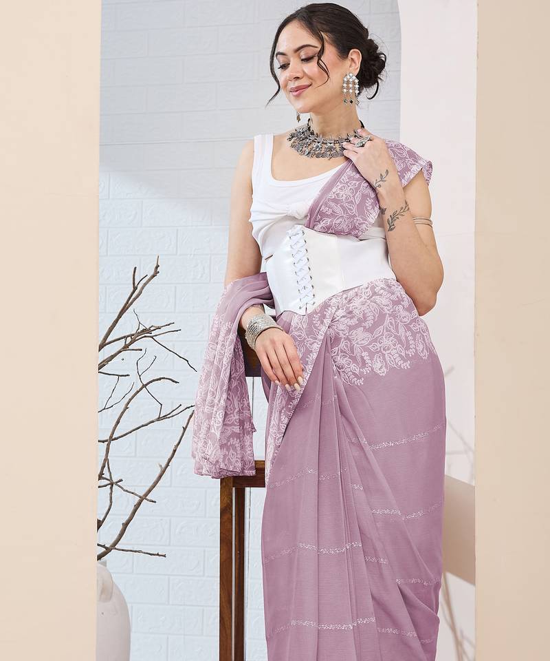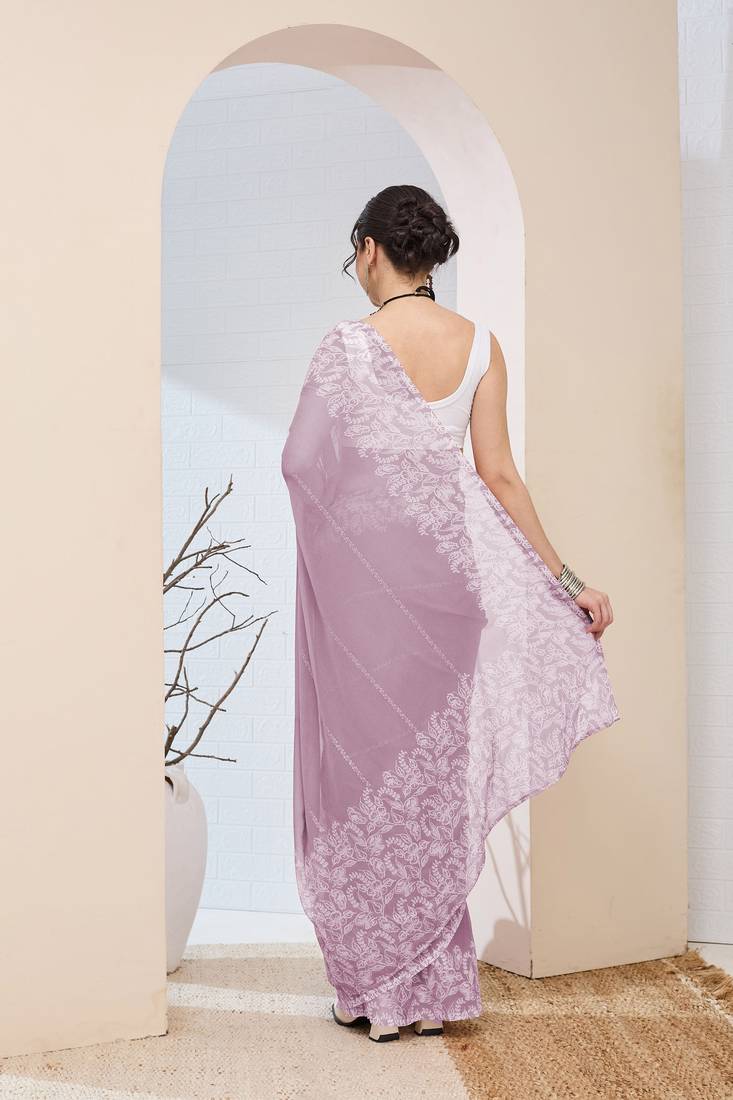 Lavender color designer printed chiffon fabric ceremonial partywear saree