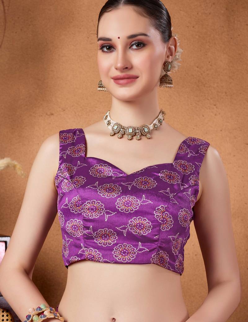 | Product Name | Lavender Color Satin Silk Fabric Ready To Wear Festive Rich Bandhani Saree | |