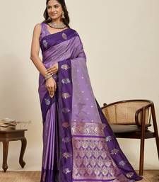 Lavender color soft art silk fabric designer ethnic woven traditional saree