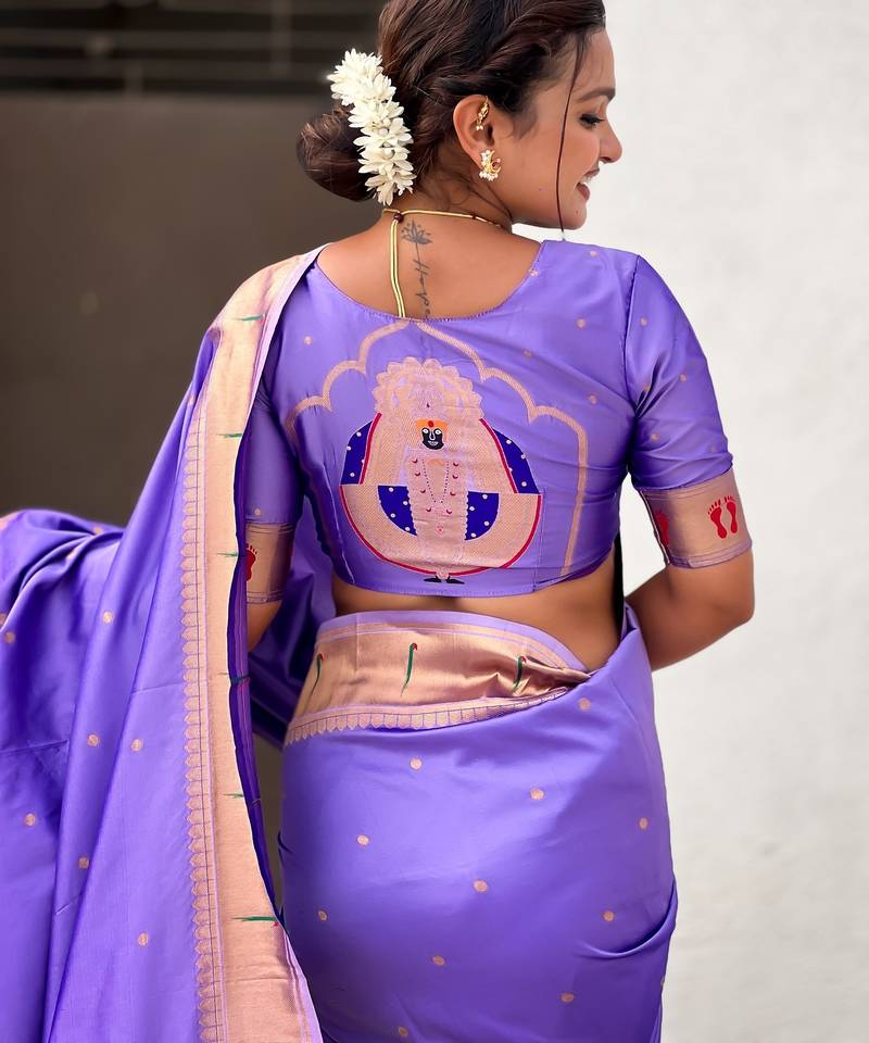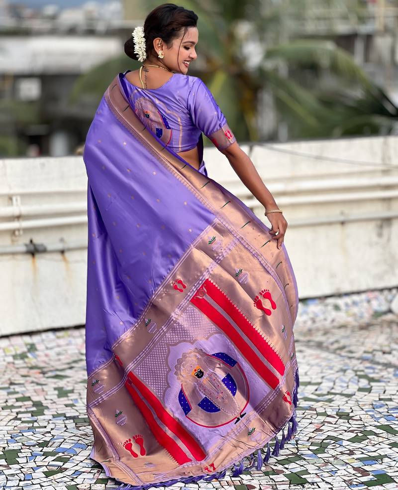 lavender color soft silk blend fabric  woven paithani designer cultural rich saree
