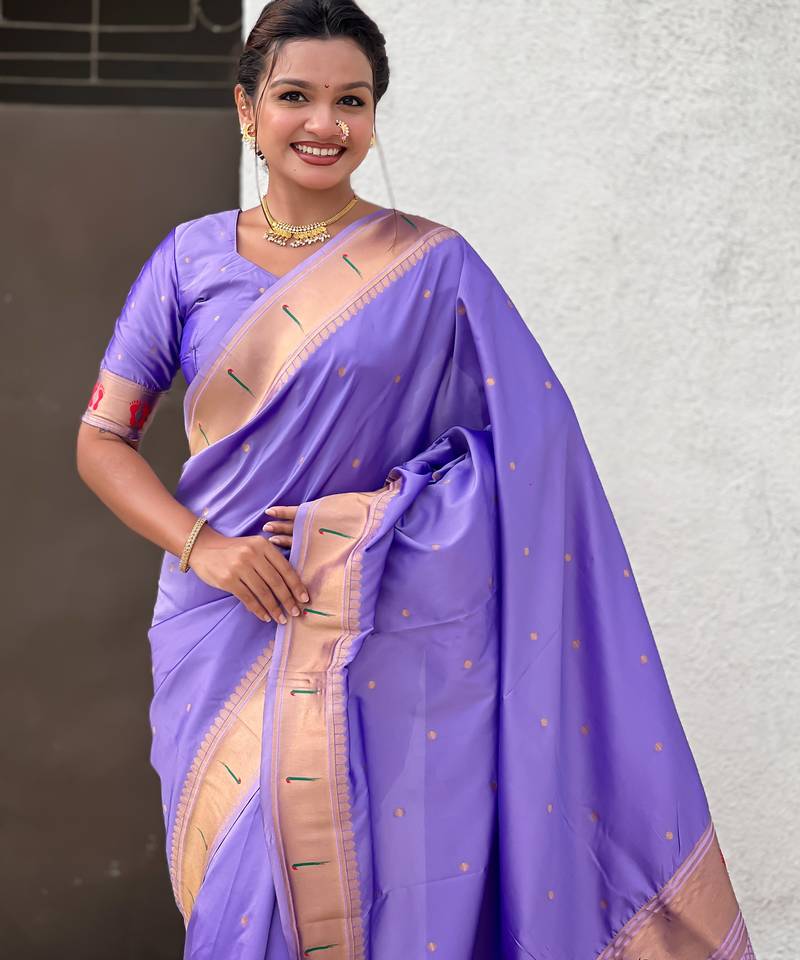 Product Name Lavender Color Soft Silk Blend Fabric Woven Paithani Designer Cultural Rich Saree