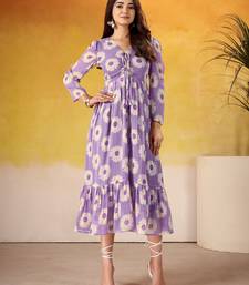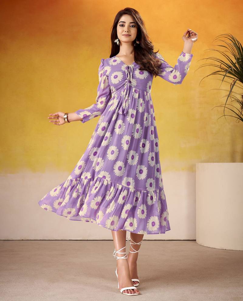 Product Name Lavender Color Weightless Marbal Fabric Designer Floral Printed Girlie Partywear Kurti