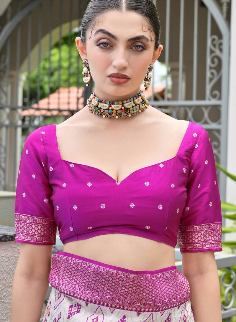 | Product Description | Attractive These Festive And Party Wear Saree In Fine Colored.These Saree And Blouse Is Fabricated On Banarasi Silk.Its Beautified With Woven Ajarakh Patola Meenakari Designer. |