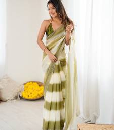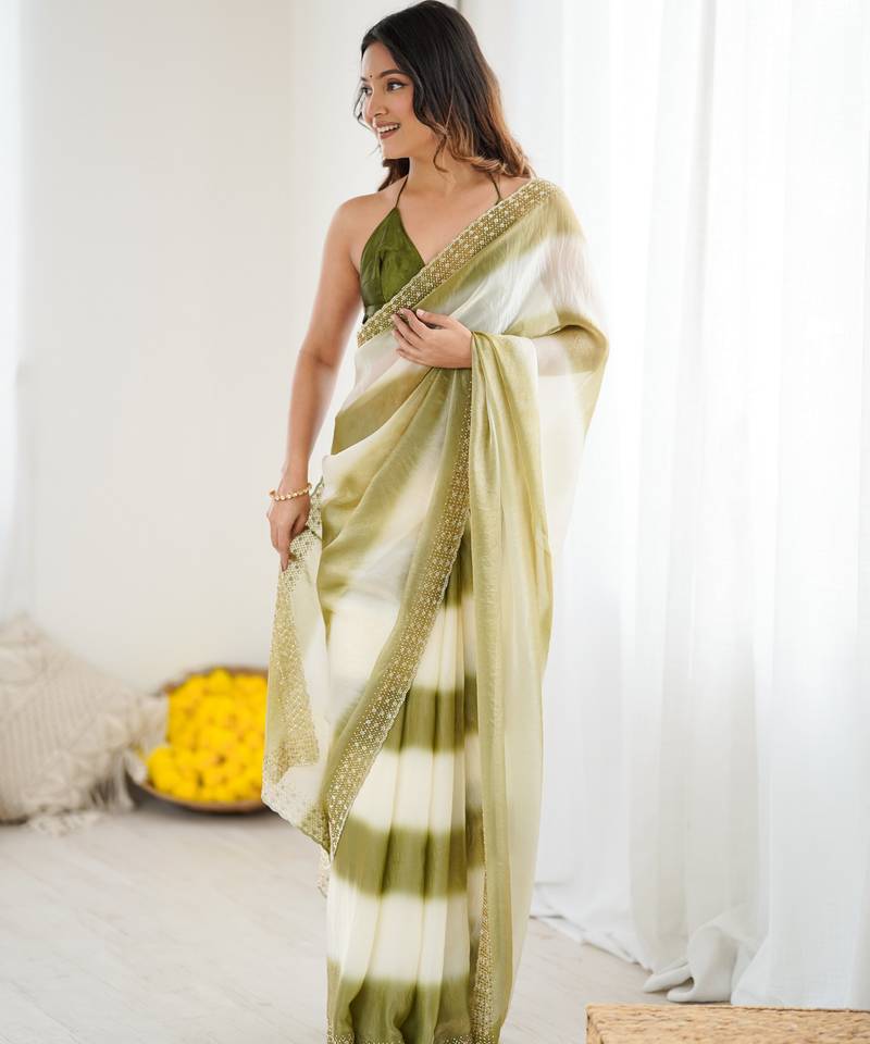 | Product Name | Mahendi Color Beautiful Fendy Satin Fabric Saree With Glamorous Zarkan Diamond Work | |