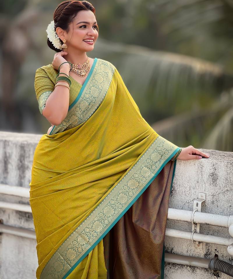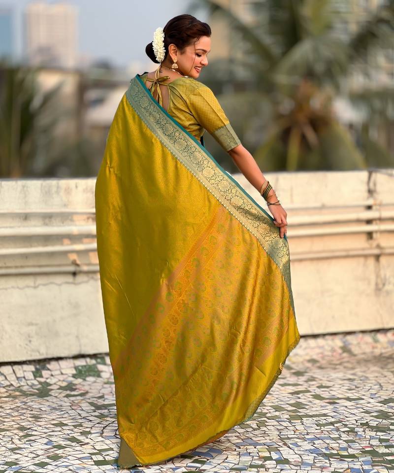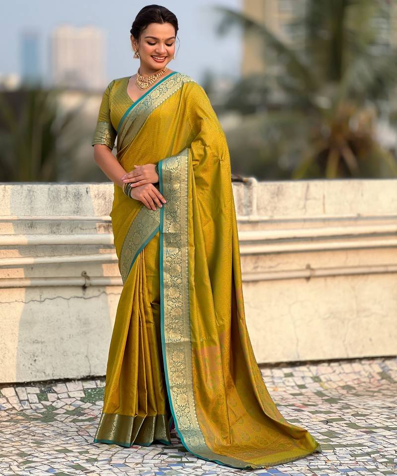 | Product Name | Mahendi Color Graceful Soft Silk Fabric Woven Designer Saree | |