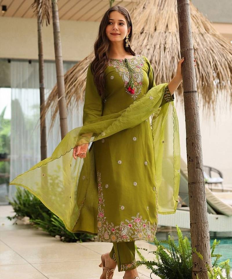 | Product Name | Mahendi Rayon Embroidery Work Suit | |