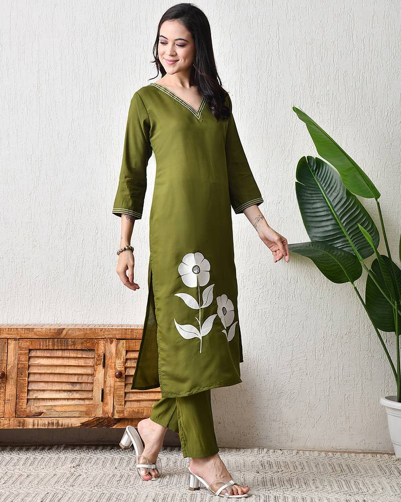 Mahendi roman silk kurta pant set