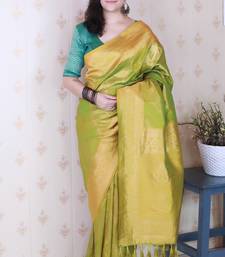 Mahendi color soft silk blend woven jari designer ethnic partywear saree