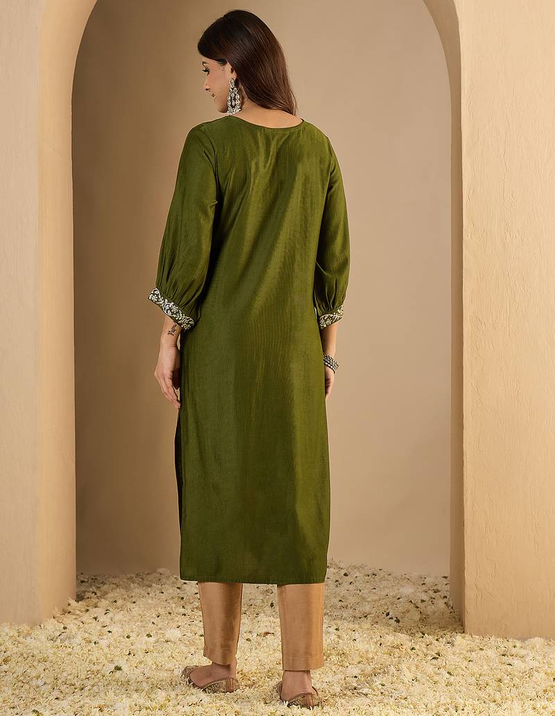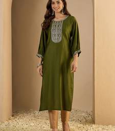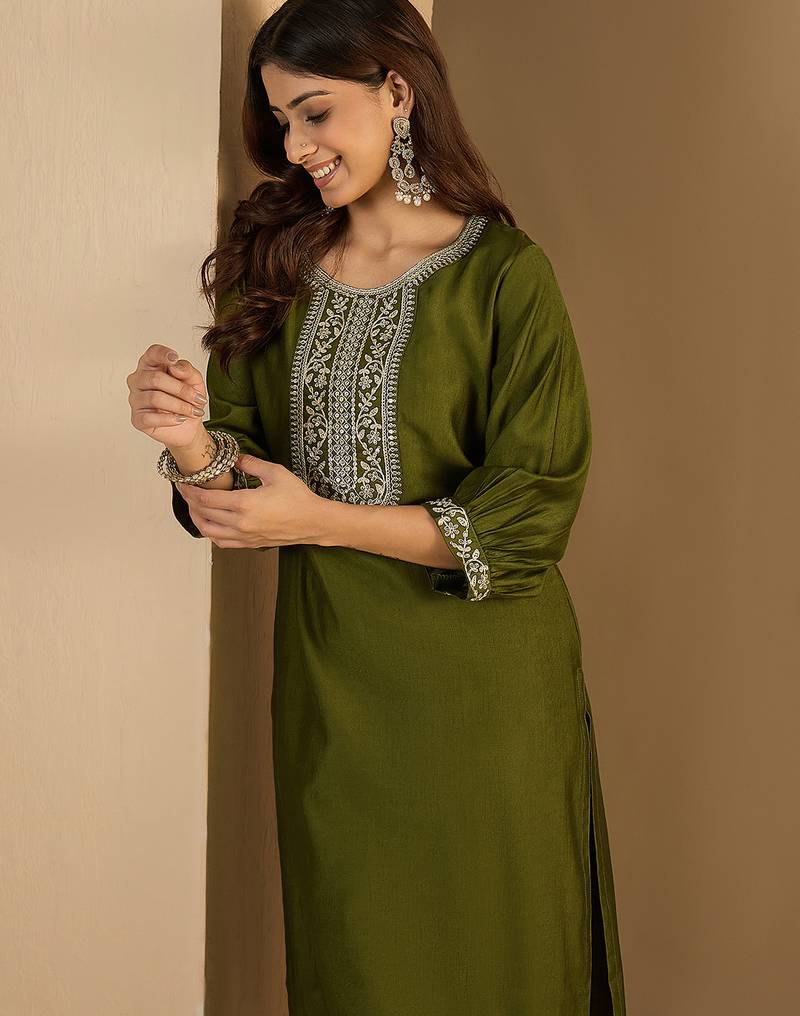 Mahendi color trendy formal looking classy ethnic kurta for girl
