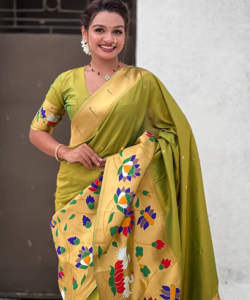 | Product Name | Mahendi Woven Meenakari Polka Paithani Art Silk Saree | |