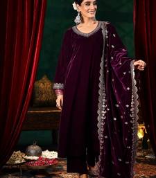 Maroon color beautiful velvet fabric graceful ceremonial kurti set