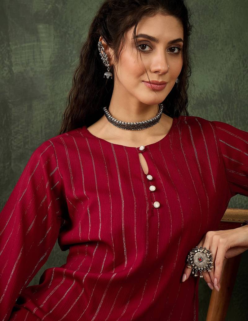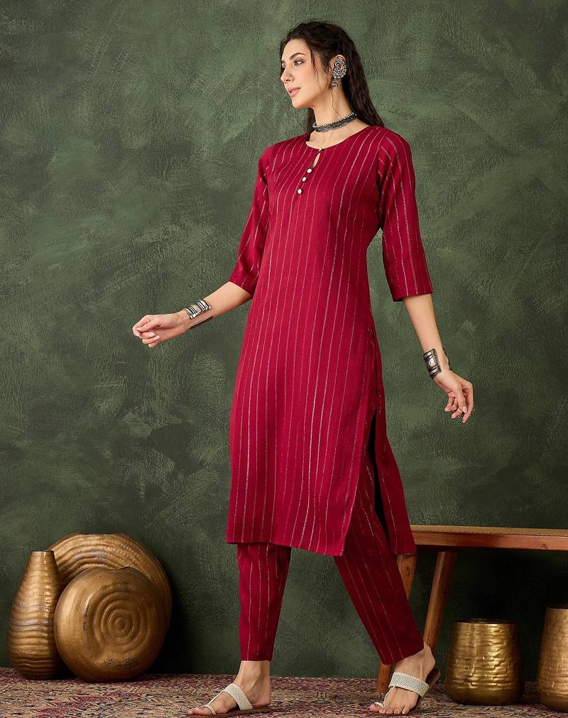 Maroon color cotton silk blend beautiful stylish tendy top bottom set