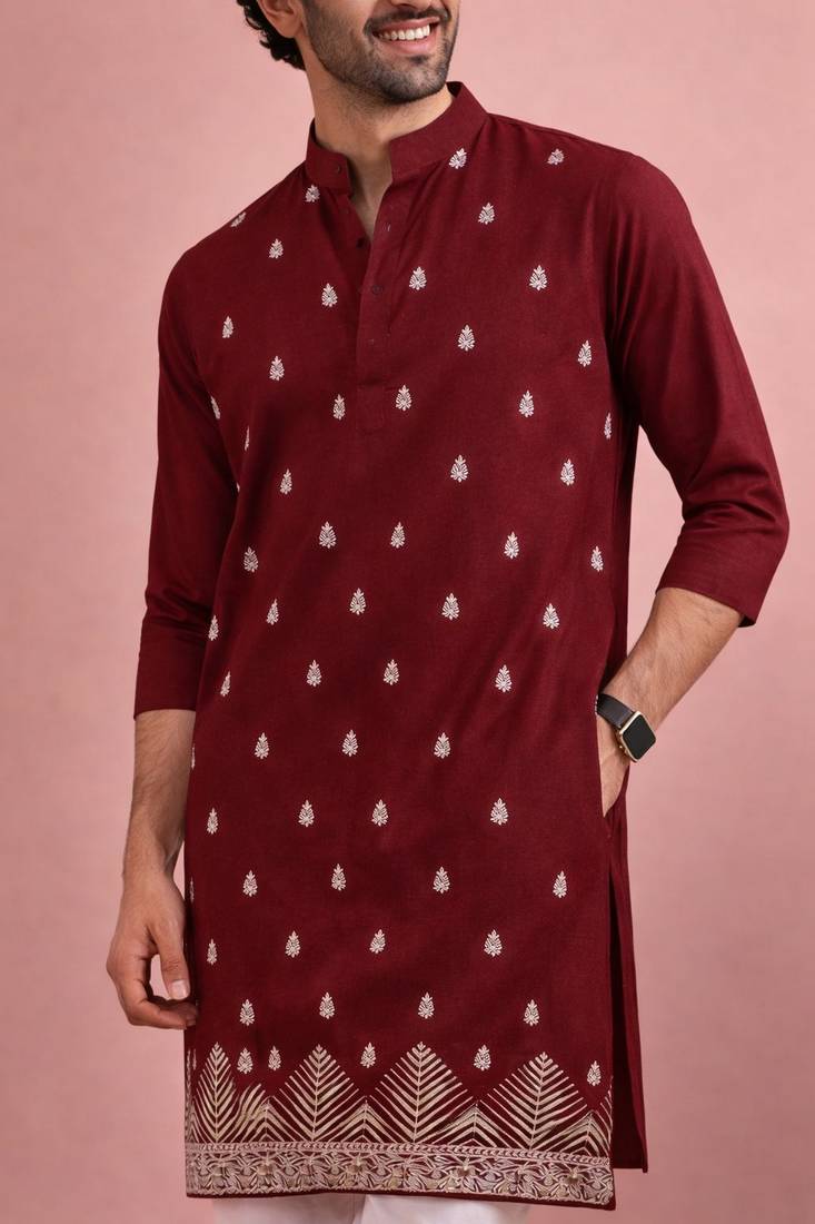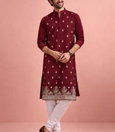 Maroon color designer embroidered men's ceremonial kurta payjama