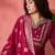 Maroon roman silk suit designed with embroidery work and wevon designer