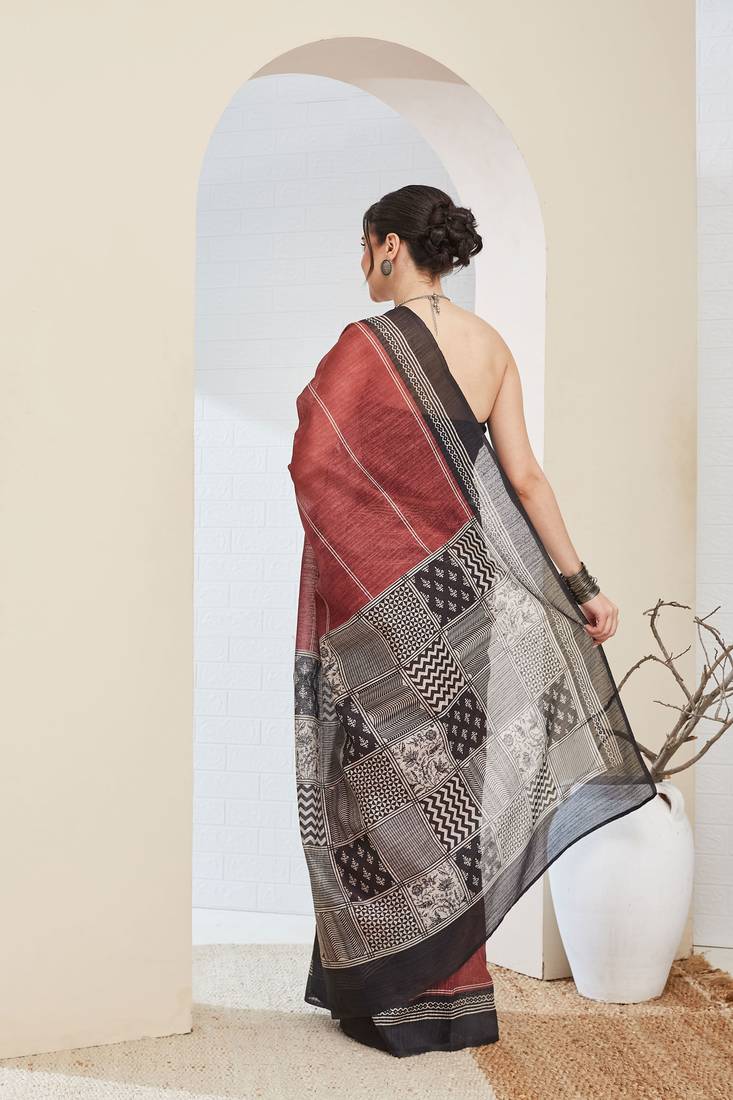 | • | Saree | : | Color- Maroon / Fabric- Silk Blend |