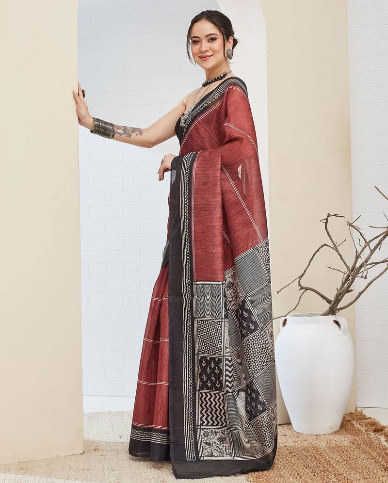 | Product Name | Maroon Color Silk Blended Designer Digital Printed Partywear Saree | |