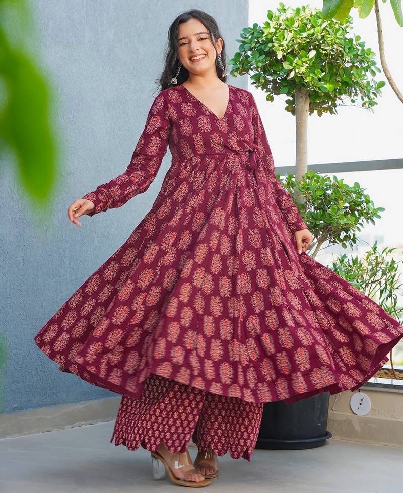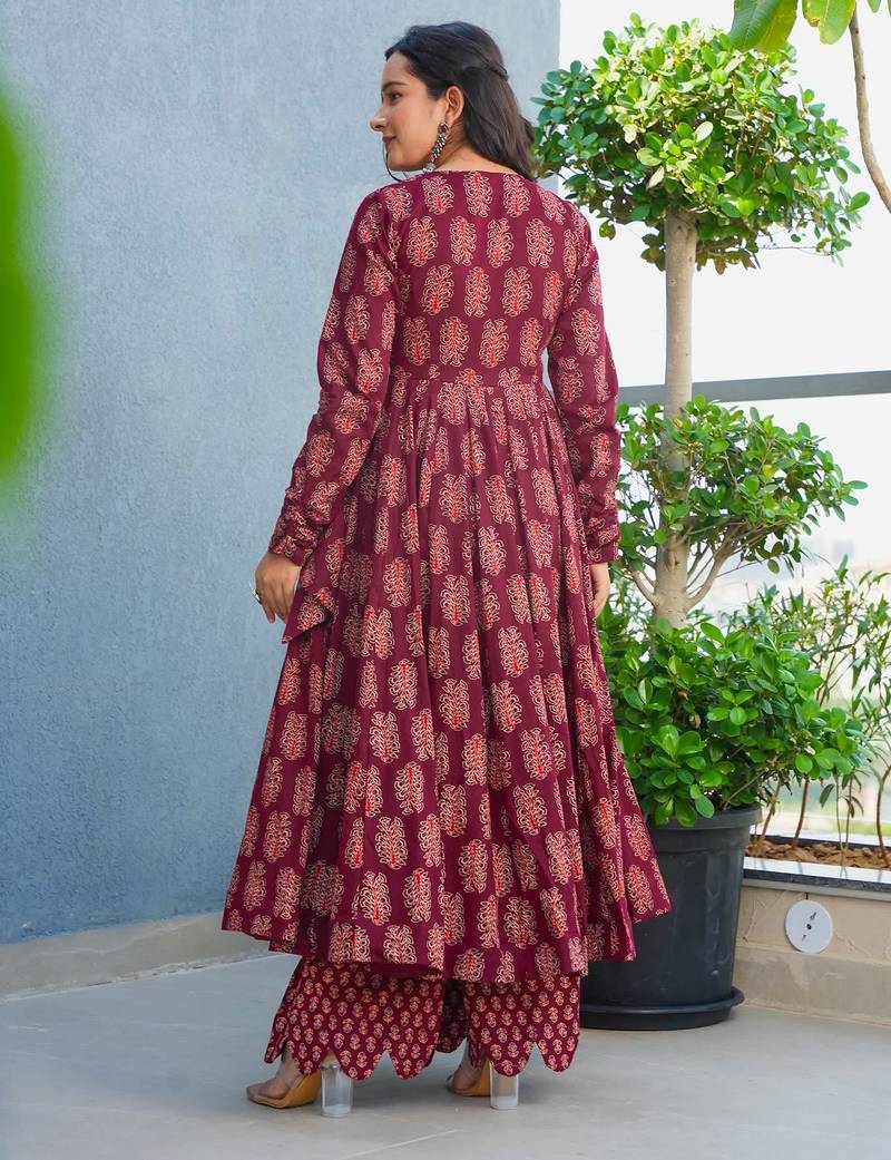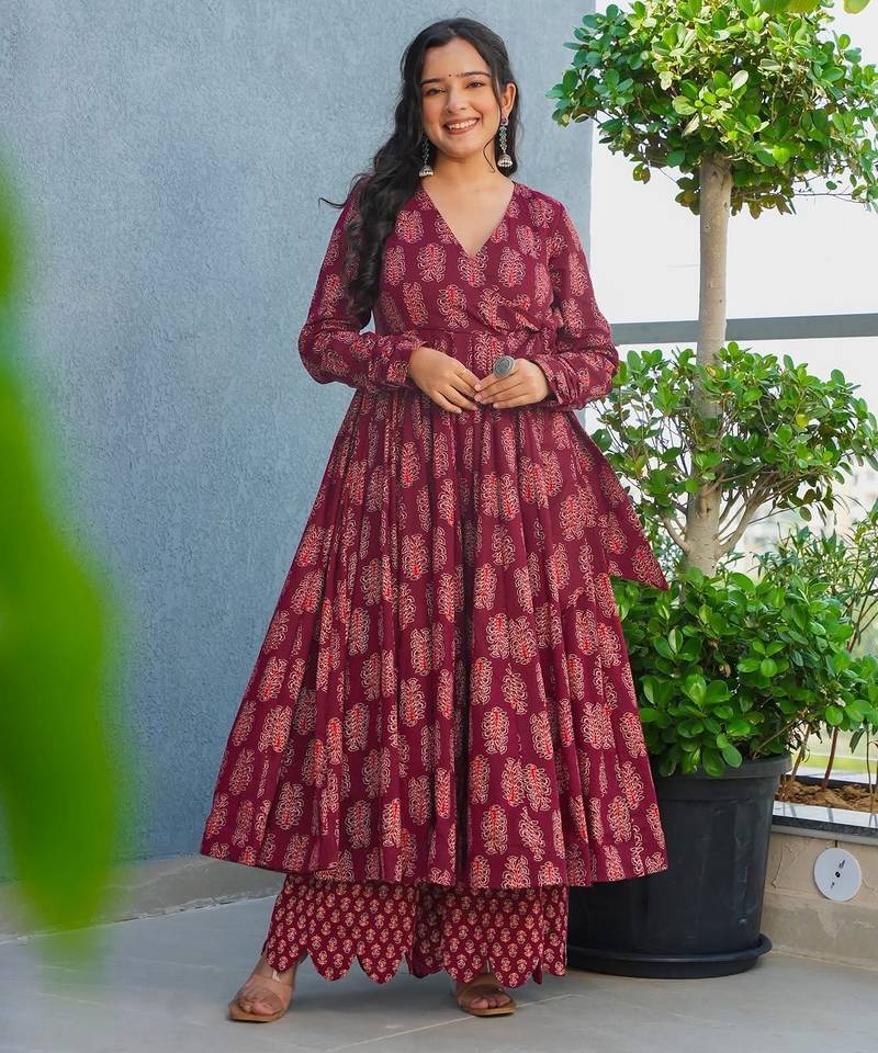 Maroon color stylish top with bottom for graceful party looks