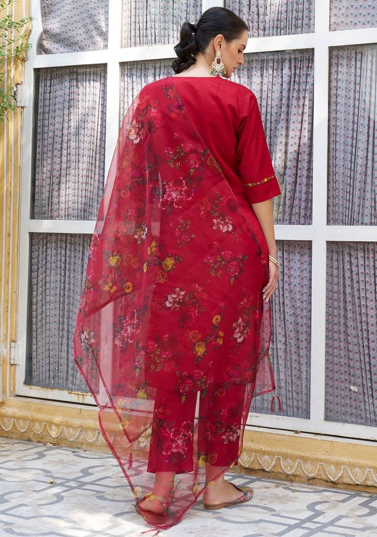 | • | Dupatta | : | Color- Maroon / Fabric- Organza |