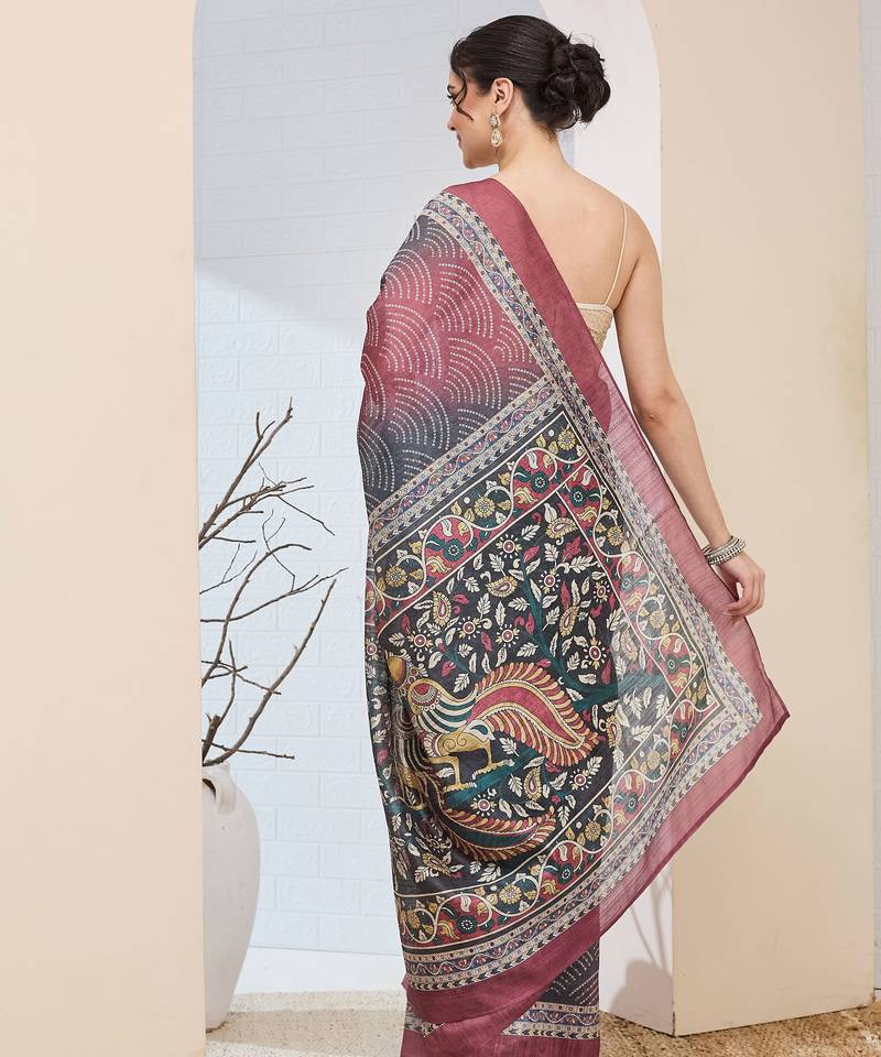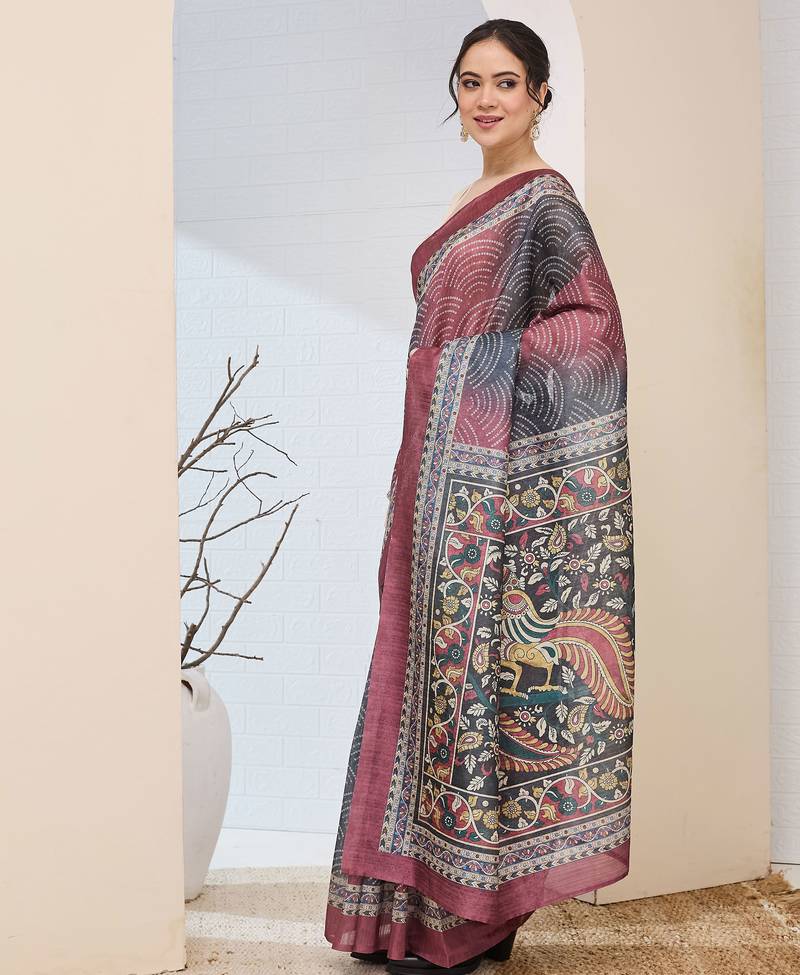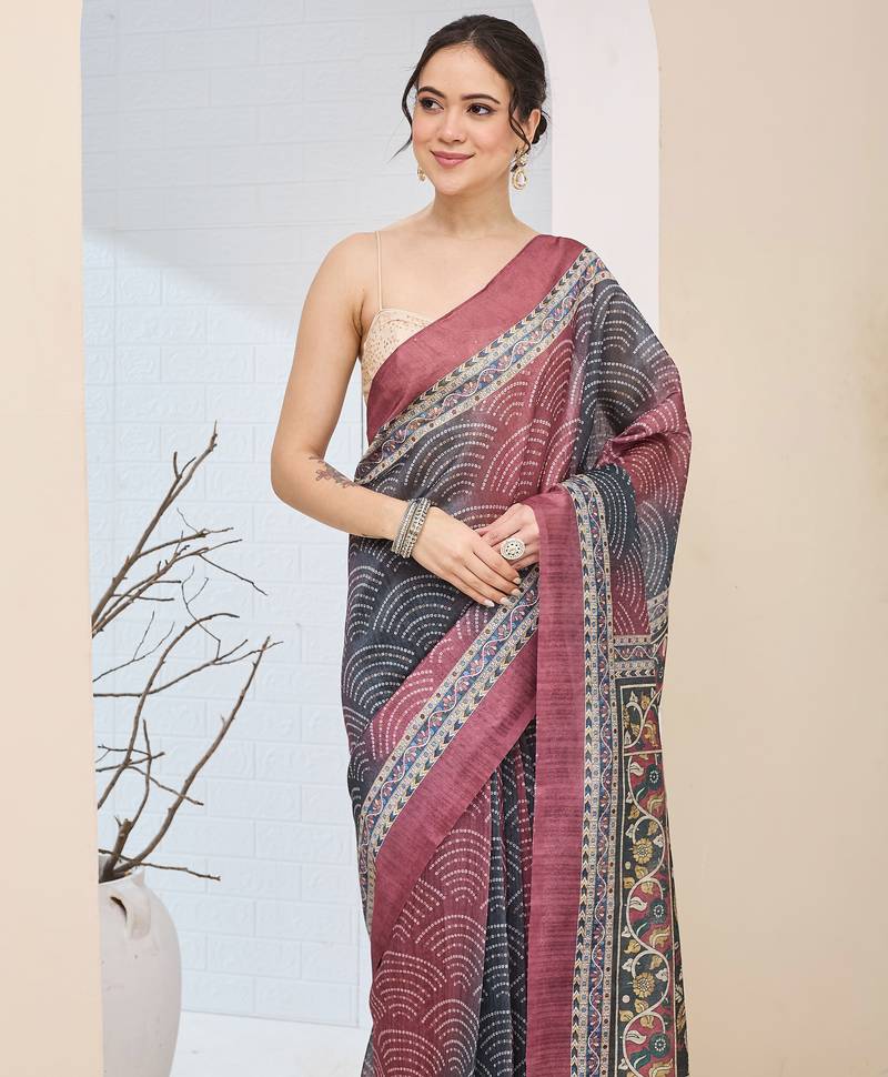 Multi color silk blended designer digital printed partywear saree