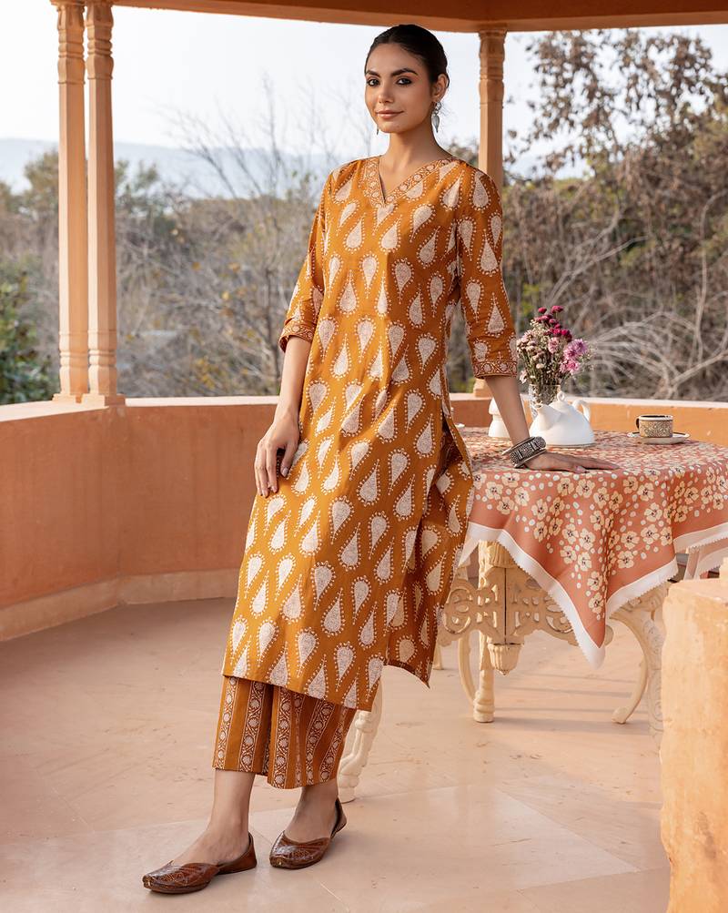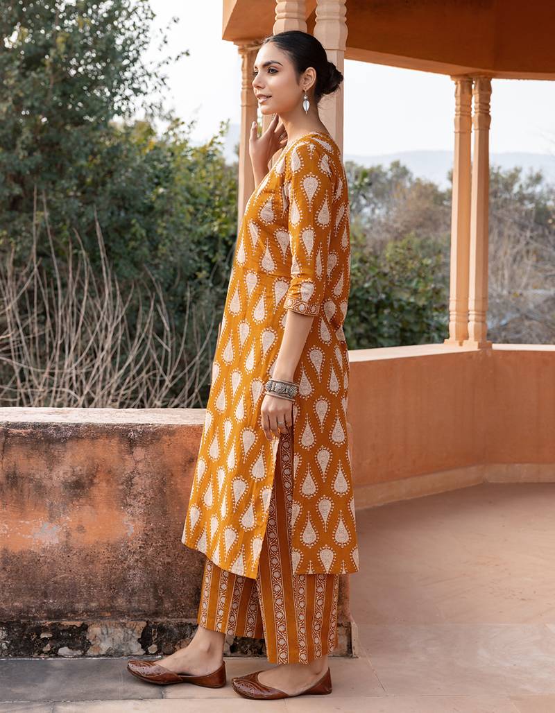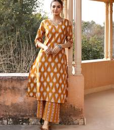 Mustard color cotton blended designer trendy top bottom set for trendy girls