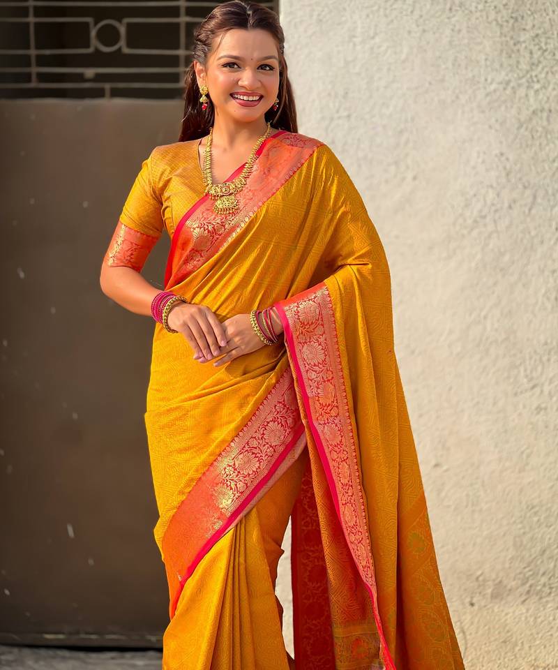 | Product Name | Mustard Color Graceful Soft Silk Fabric Woven Designer Saree | |