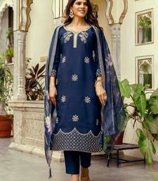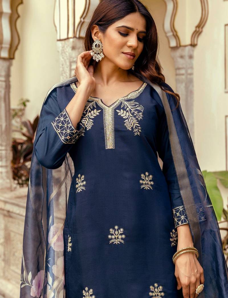 Navy blue color beautiful viscose chanderi fabric graceful ceremonial kurti set