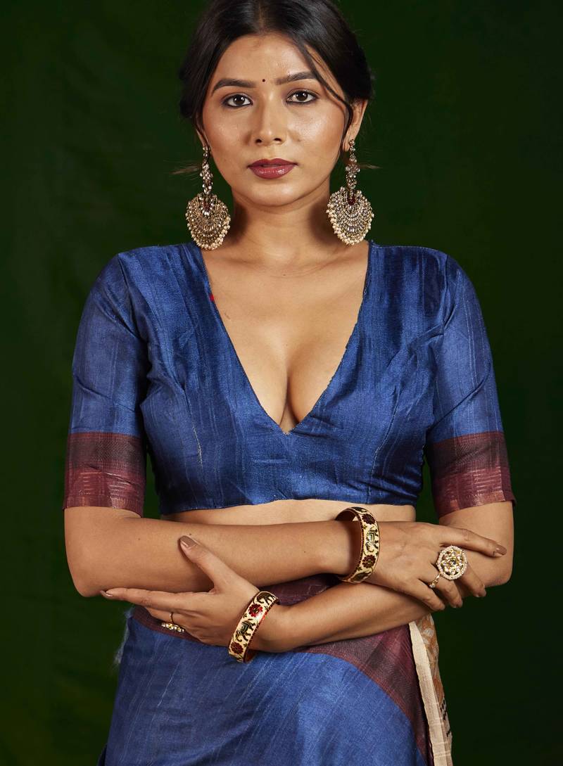 | • | Saree | : | Color- Navy Blue / Fabric- Silk Blend |