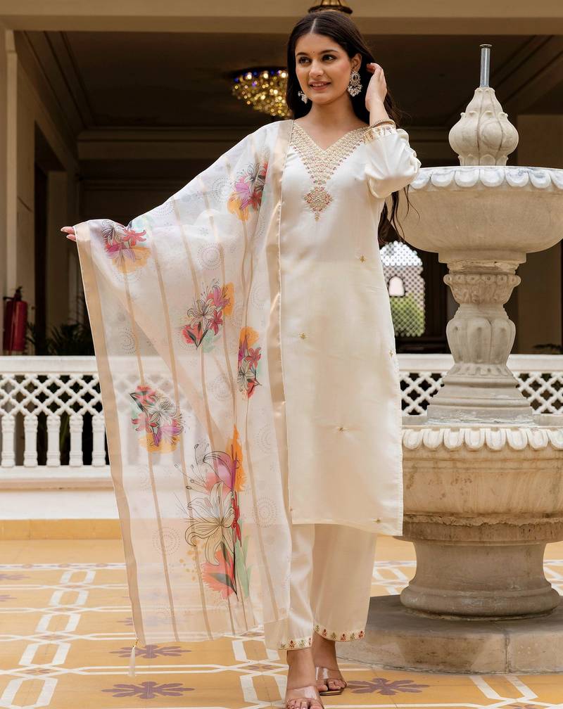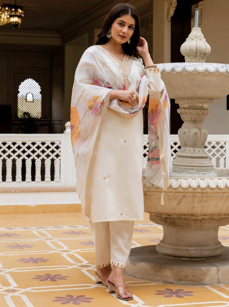 Off white color beautiful viscose chanderi fabric graceful ceremonial kurti set