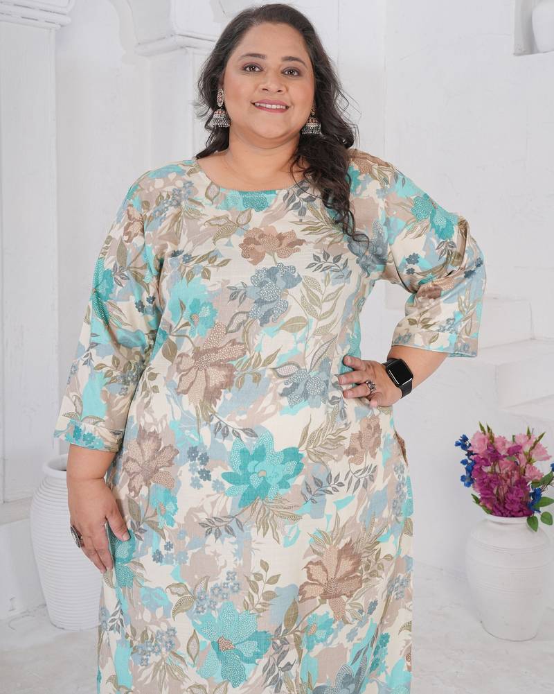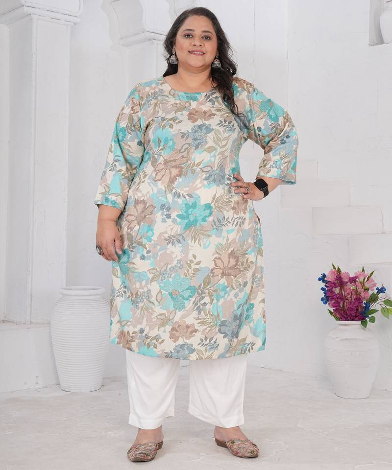 | Product Name | Off White Color Designer Printed Smart Look Plus Size Kurti | |