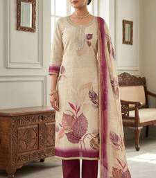 Off white color simmer cotton fabric designer salwar kameez with elegant hand work unstitched