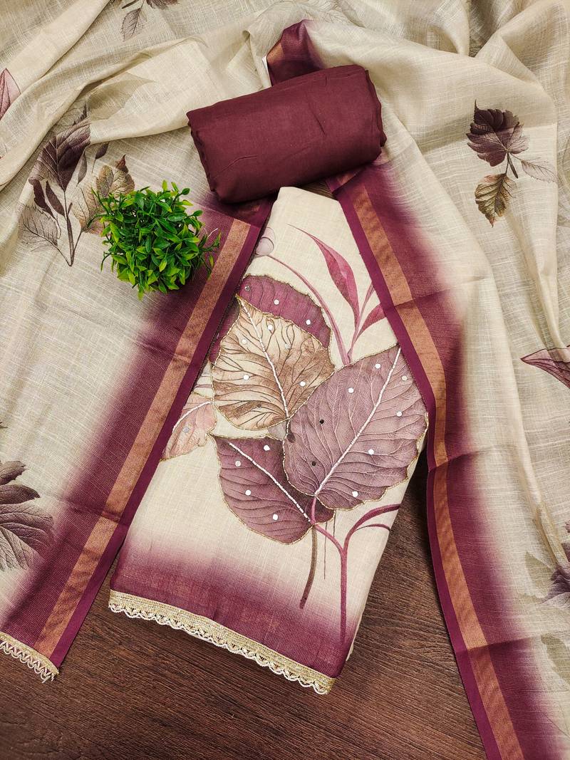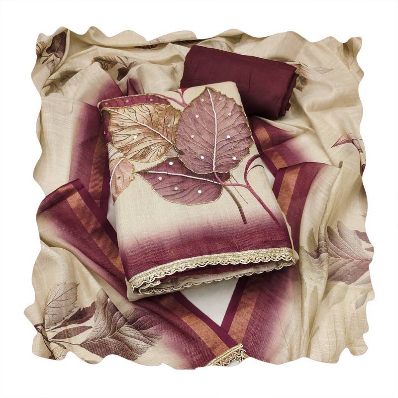 Dupatta : Color- Wine / Fabric- Blended Cotton