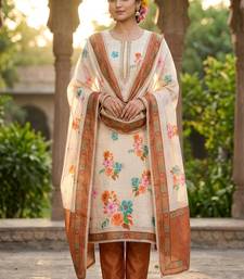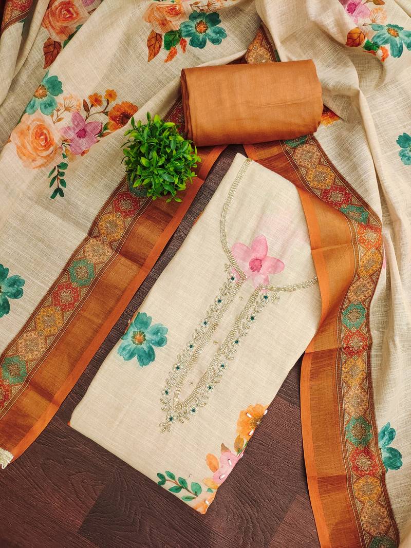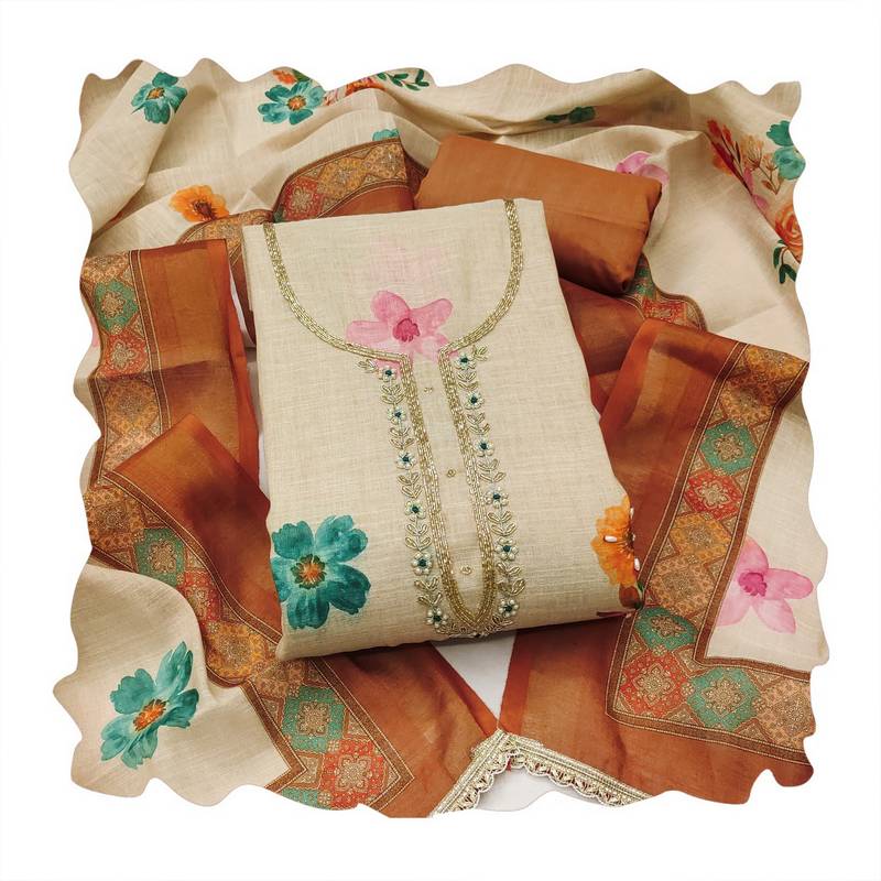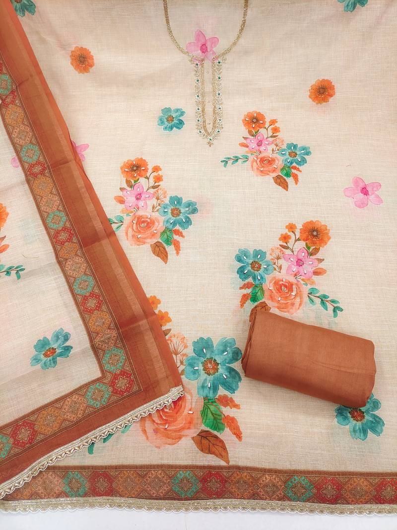 Off white color smart and elegant lilen cotton salwar kameez unstitched